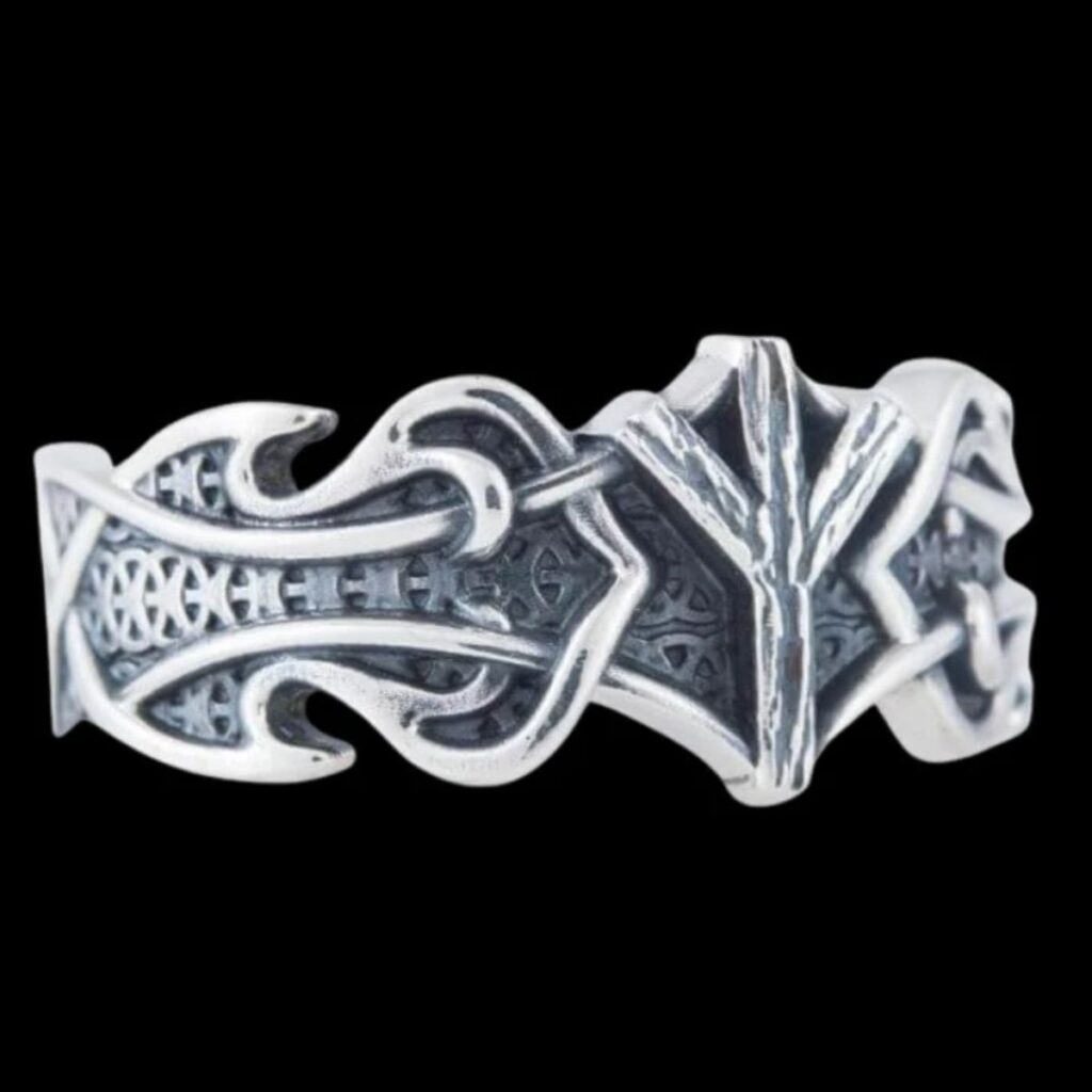 Mjölnir, Thors Hammer, ist wohl das bekannteste Wikinger-Tattoo. Er symbolisiert Thors wichtigstes Attribut, die Waffe, mit der er Asgard und Midgard vor dem Chaos der Jötunn beschützte.