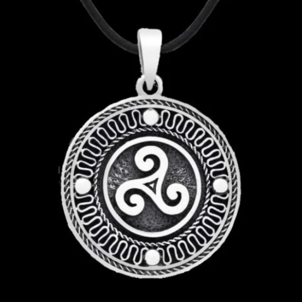 While no ancient examples of the symbol survive, smith Kari Erlands popularized metal amulets of the swirling symbol, which she claims to have copied from a protective rune that she found on her parents’ farm in Sweden.