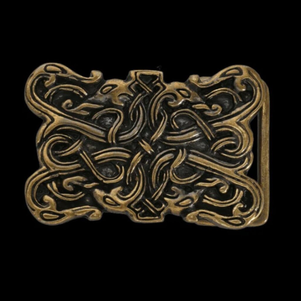 Cette boucle de ceinture en bronze, fabriquée à la main, représente des dragons dans le style des bêtes agrippantes, imitant plus précisément le style Ringerike qui était populaire en Norvège au Xe siècle .